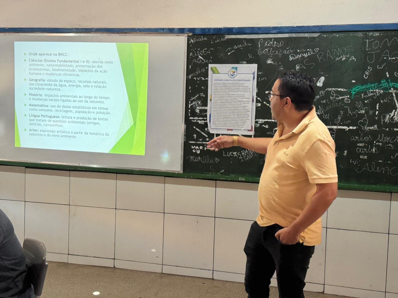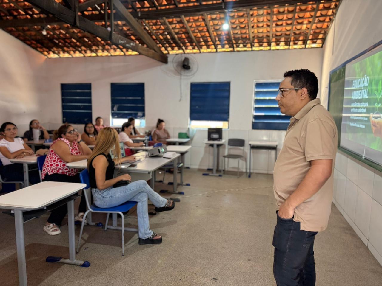 A capacitação teve como tema “Educação Ambiental: Transformando hábitos no município”, e foi ministrada pelo Engenheiro Florestal Gedeones Brito, onde ele abordou sobre a importância da preservação dos recursos naturais, o desenvolvimento de projetos sustentáveis nas escolas e a promoção de atividades que envolvam a comunidade escolar em ações de proteção ambiental. Os participantes tiveram a oportunidade de trocar experiências e discutir estratégias para implementar iniciativas de educação ambiental em suas instituições.