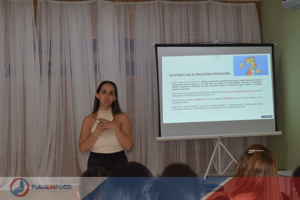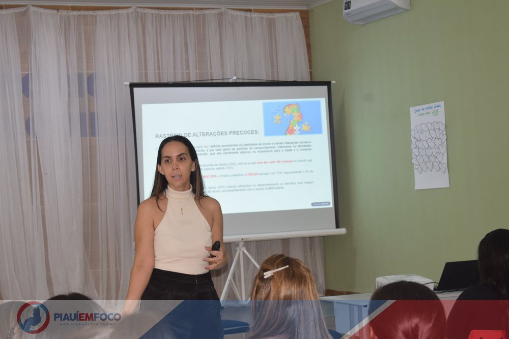 A abertura das atividades contou com a contribuição da enfermeira Sauana Moura, que ministrou a palestra “O Papel do Profissional da Atenção Primária à Saúde na Promoção do Desenvolvimento Infantil”. A abordagem destacou a importância do olhar atento dos profissionais desde os primeiros meses de vida da criança, reforçando que a Atenção Primária é a porta de entrada fundamental para identificar e estimular o pleno desenvolvimento na infância.
