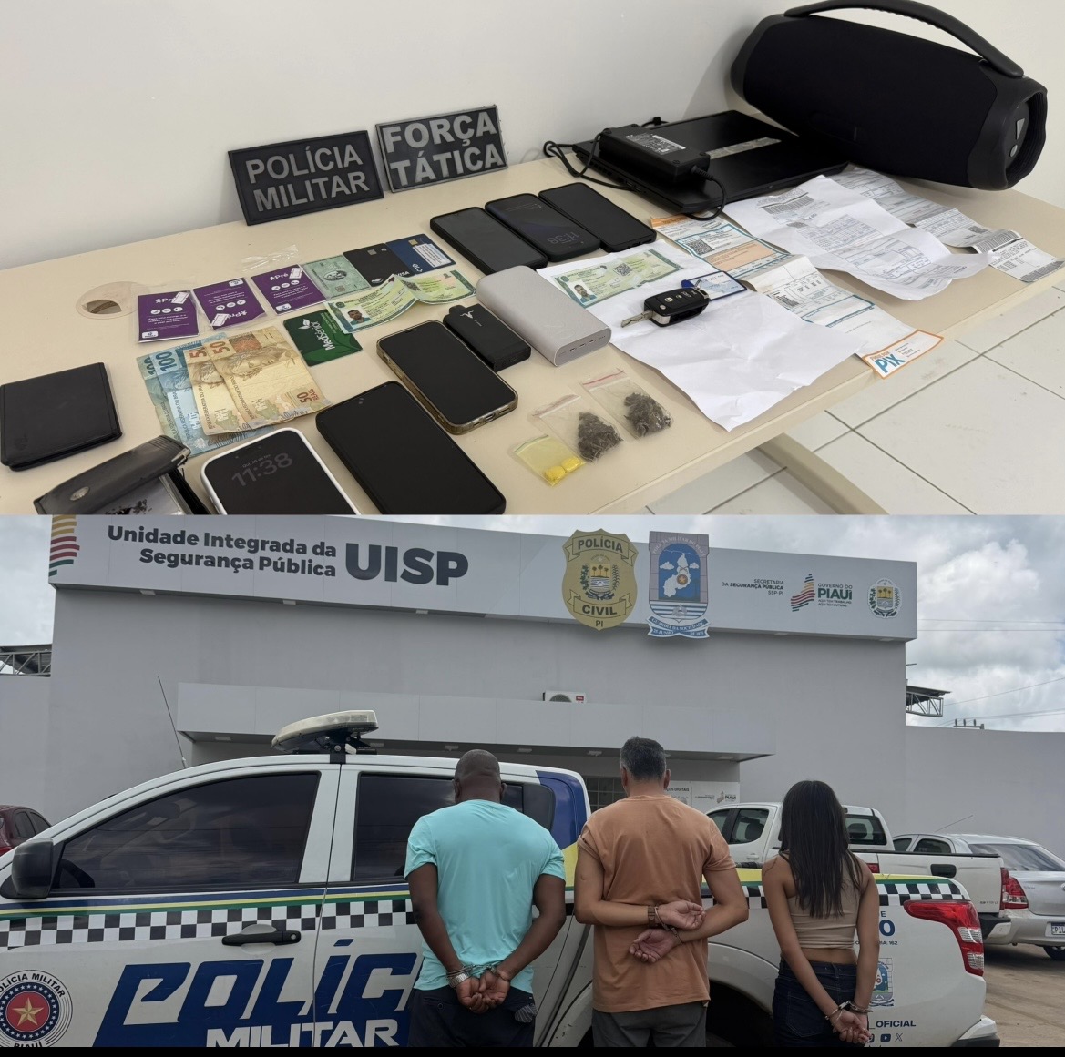 Após receber o alerta sobre as tentativas de fraude, a equipe policial iniciou diligências imediatas pela cidade. A operação resultou na captura estratégica dos suspeitos em dois pontos distintos: Praça Dr. Isaías Coelho e na Av. Miguel Crispim de Araújo.